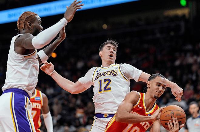另一邊的老鷹隊,本場比賽之前,4勝5負排名東部第9,盡管老鷹現在戰績一般,但他們具備東部黑馬的潛能,鋒線儲備充足,擅長防守,上賽季的助攻王和搶斷王,都是老鷹的。同時,今夏老鷹也提升瞭陣容強度,引援來波神,亞歷山大沃克,肯納德,這些都是爭冠球隊的優質拼圖。本場比賽,雙方在首發陣容上面,老鷹這邊派出的是,裡薩謝,古耶,奧孔古,丹尼爾斯和華萊士。特雷楊因傷缺席,湖人這邊派出的是,八村塁,艾頓,東契奇,斯馬特,拉拉維亞。裡夫斯也不打。首節比賽開始,老鷹第一攻,裡薩謝低手上籃打進本場比賽是個進球。