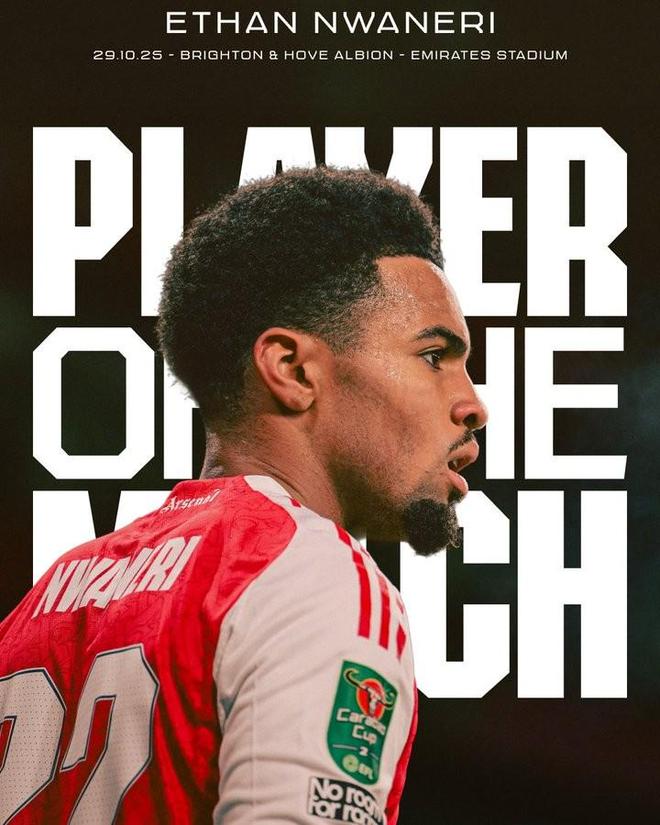 在今天凌晨進行的英聯杯第四輪比賽中,阿森納主場2-0擊敗佈萊頓,賽後,恩瓦內裡被評為阿森納隊內最佳球員。