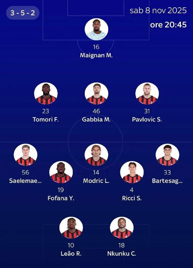 下面是意大利天空體育給出的預測首發: